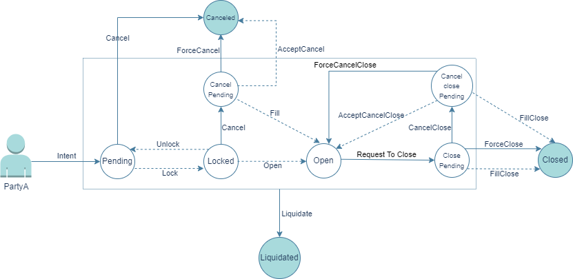 After each PartyA makes a request to close, they are allowed to cancel their close request before the solver fills it. Similar to the request to cancel, the solver has a certain amount of time to respond to such requests, or the cancel close requests will be forced.