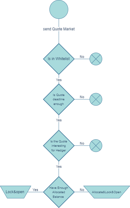 Upon seeing a request made by PartyA, solvers should first check if they are whitelisted, meaning the user whitelisted the solvers address as intent parameter & they are therefore allowed to act upon the request. After this, there's a race among solvers to be the first to lock(claim) the Intent. The solver who locks the intent first will have the opportunity to open the position. Thus, the solver should to review the intent to ensure it aligns with their policies and is "interesting" enough to be opened, this is an additional security measure no onchain derivatives platform in crypto can offer market makers. If the intent is interesting and matches solver policies, and they have sufficient allocated balance with the corresponding PartyA, they should immediately lock it by calling the "lockQuote" function.